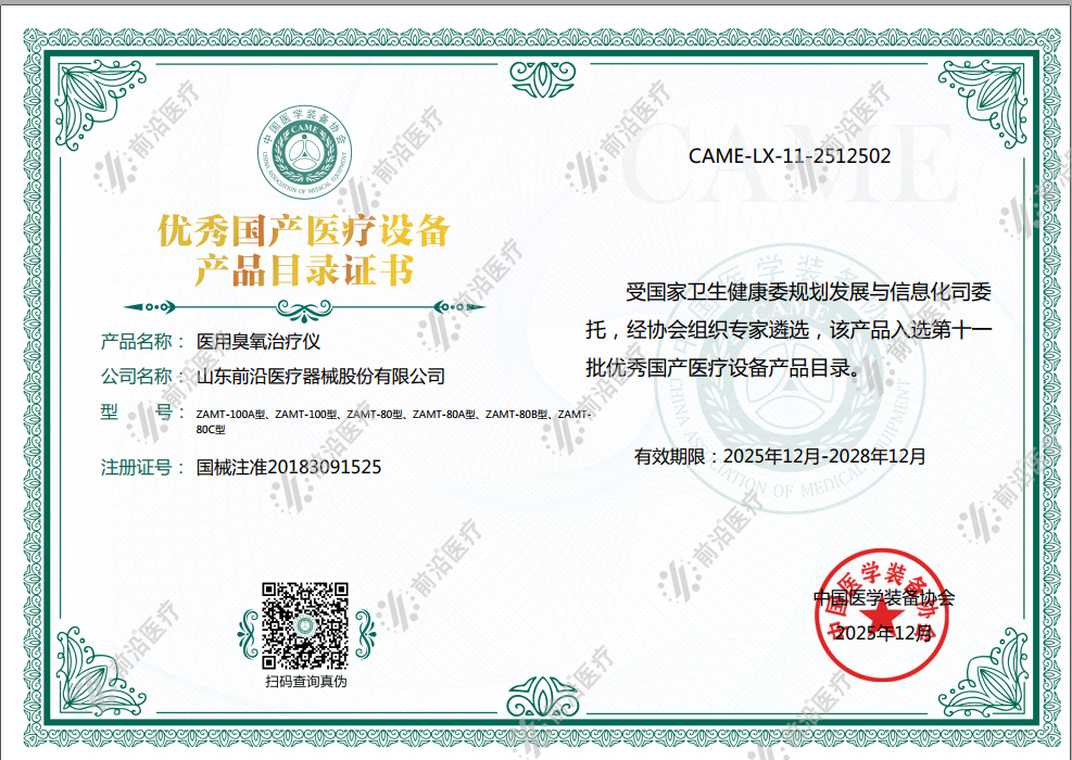 祝賀前沿醫療6款醫用臭氧治療儀,成功入選中國醫學裝備協會評選的第十一批優秀國產醫療設備名單!這是繼2020年11月,公司研發生產的內熱式針灸治療儀入選《第九批優...